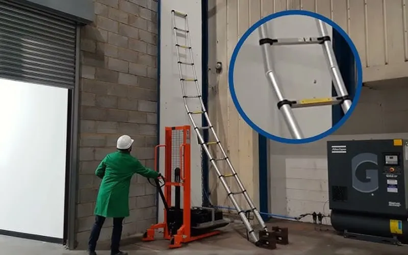 قبل از استفاده از نردبان حتماً باید آن را بررسی کنید. اطمینان حاصل کنید که هیچگونه آسیب یا نقصی در بخشهای تلسکوپی وجود ندارد.